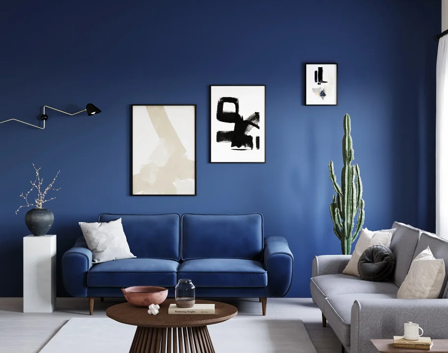 Koyu lacivert tonları, nötr renklerin monotonluğunu kırmanın en zarif yollarından biridir. Özellikle açık renkli mobilyalarla kombinlendiğinde kontrast etkisiyle alanı büyütür ve sofistike bir hava yaratır. Oturma odalarında, yemek alanlarında veya çalışma odalarında duvarlarda kullanıldığında sade ama etkileyici bir atmosfer oluşturur.