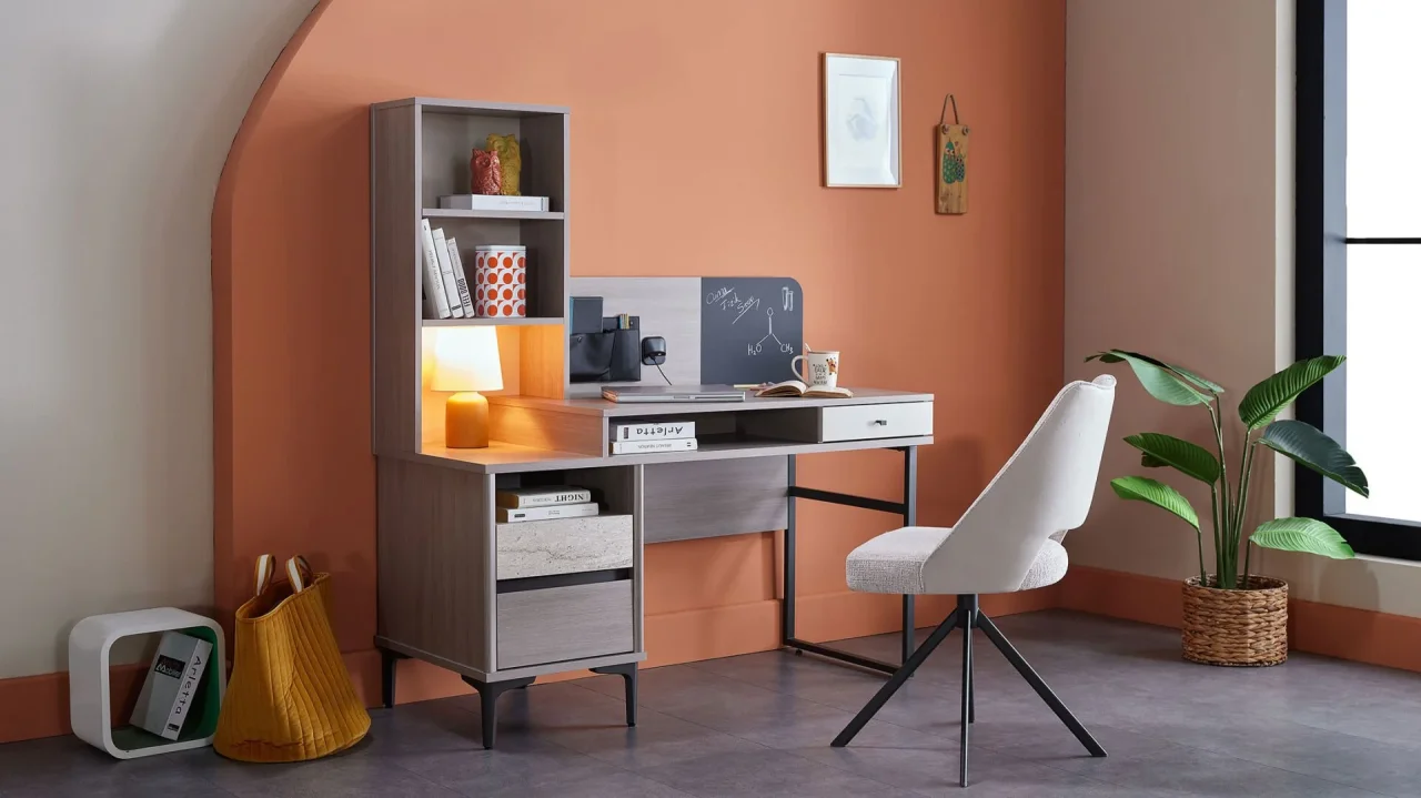 - Nasıl seçilir? Çekmeceli, üst raflı, en az 120 cm genişliğinde bir masa + sırtı destekleyen, yüksekliği ayarlanabilir sandalye. Pencere önüne yerleştirirseniz doğal ışık göz yorgunluğunu azaltır.
