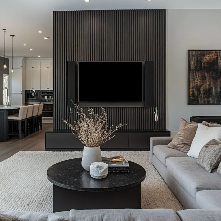 TV ünitesi yalnızca bir mobilya değil, aynı zamanda duvar tasarımının da merkezi. TV duvarı ile koltuk takımı arasında renk ve doku ilişkisi kurulmalı. Açık renk koltuk kullanılan bir salonda koyu TV duvarı güçlü bir kontrast yaratır. Koyu koltuklarda ise açık tonlu duvar panelleri alanı ferahlatır. LED aydınlatmalı TV üniteleri son dönemde oldukça popülerdir ve özellikle akşam saatlerinde mekâna sofistike bir atmosfer kazandırır. Aydınlatma doğru planlandığında hem koltuk takımı hem de TV ünitesi ön plana çıkar.