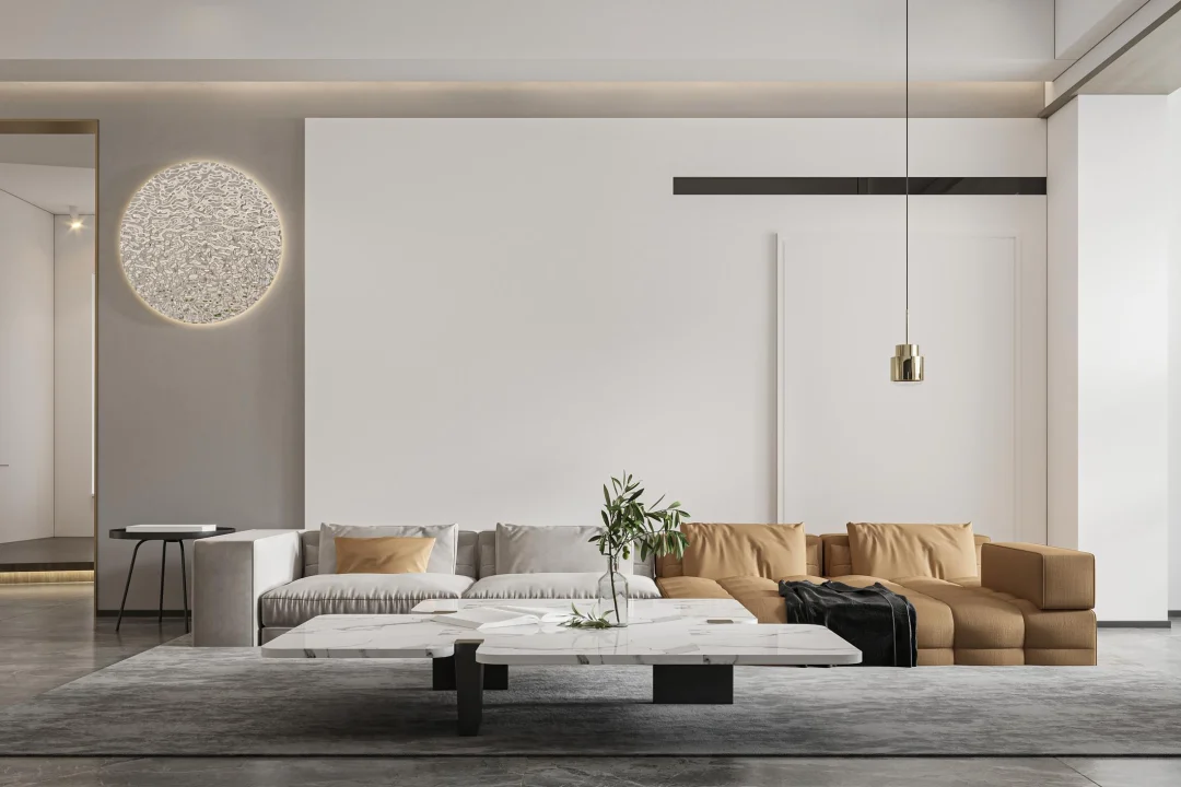Geniş ve yüksek tavanlı salonlarda daha iddialı kombinler yapılabilir. Büyük modüler TV duvarları, mermer detaylar ve geniş oturumlu koltuk takımları lüks bir atmosfer yaratır. Özellikle villa ve büyük yaşam alanlarında TV ünitesi yalnızca bir depolama alanı değil, dekoratif bir mimari unsur olarak tasarlanır. Koltuk takımı ile aynı çizgide tasarlanmış TV üniteleri mekânda bütüncül bir tasarım dili oluşturur.